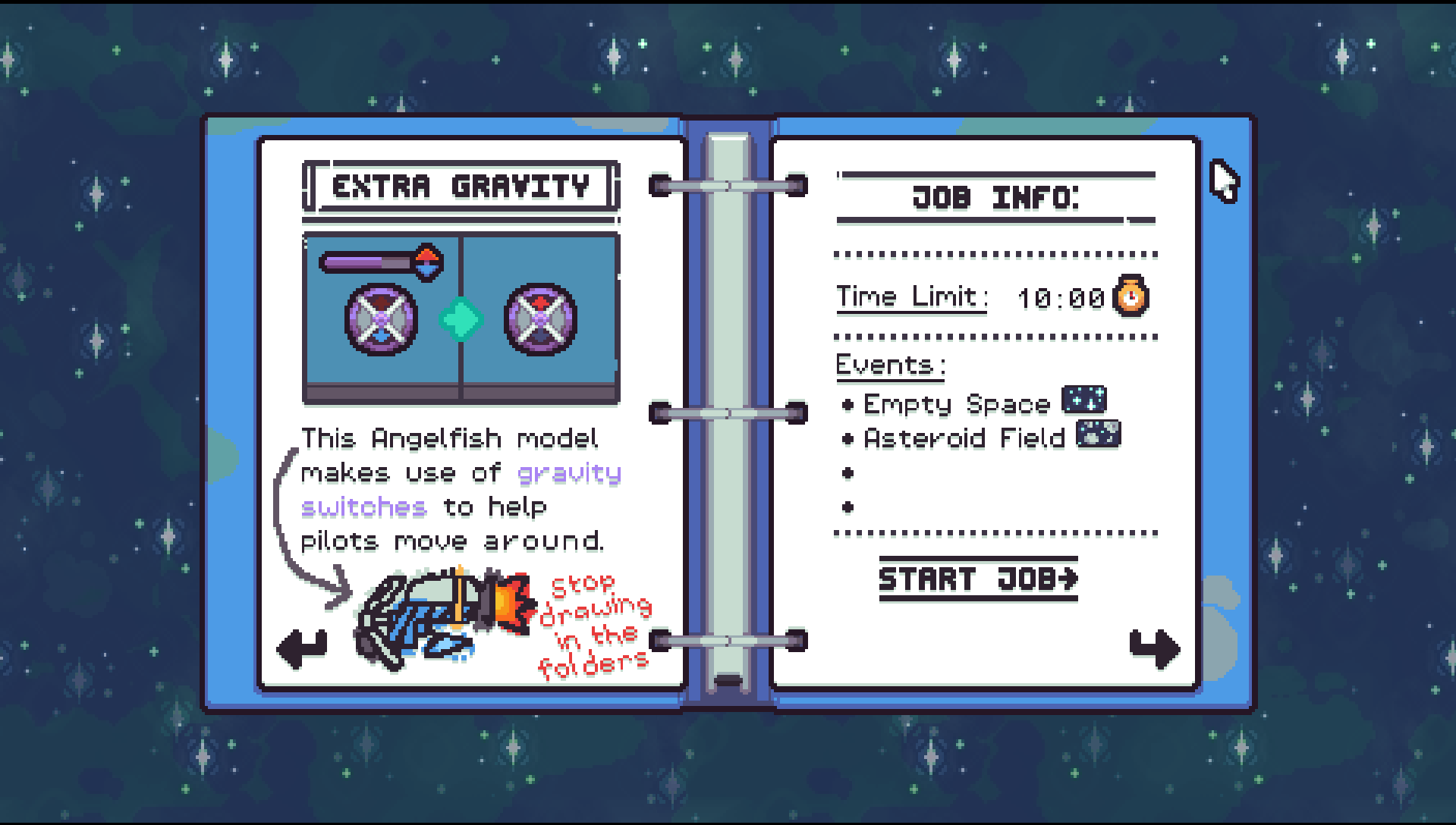 Play as a worker for the famous spaceship reclamation company, Diving Bell Inc.! Take on asteroids and aliens while you maintain your ship's power and fuel, play it risky and try to get the best score possible or play it carefully and just get by!